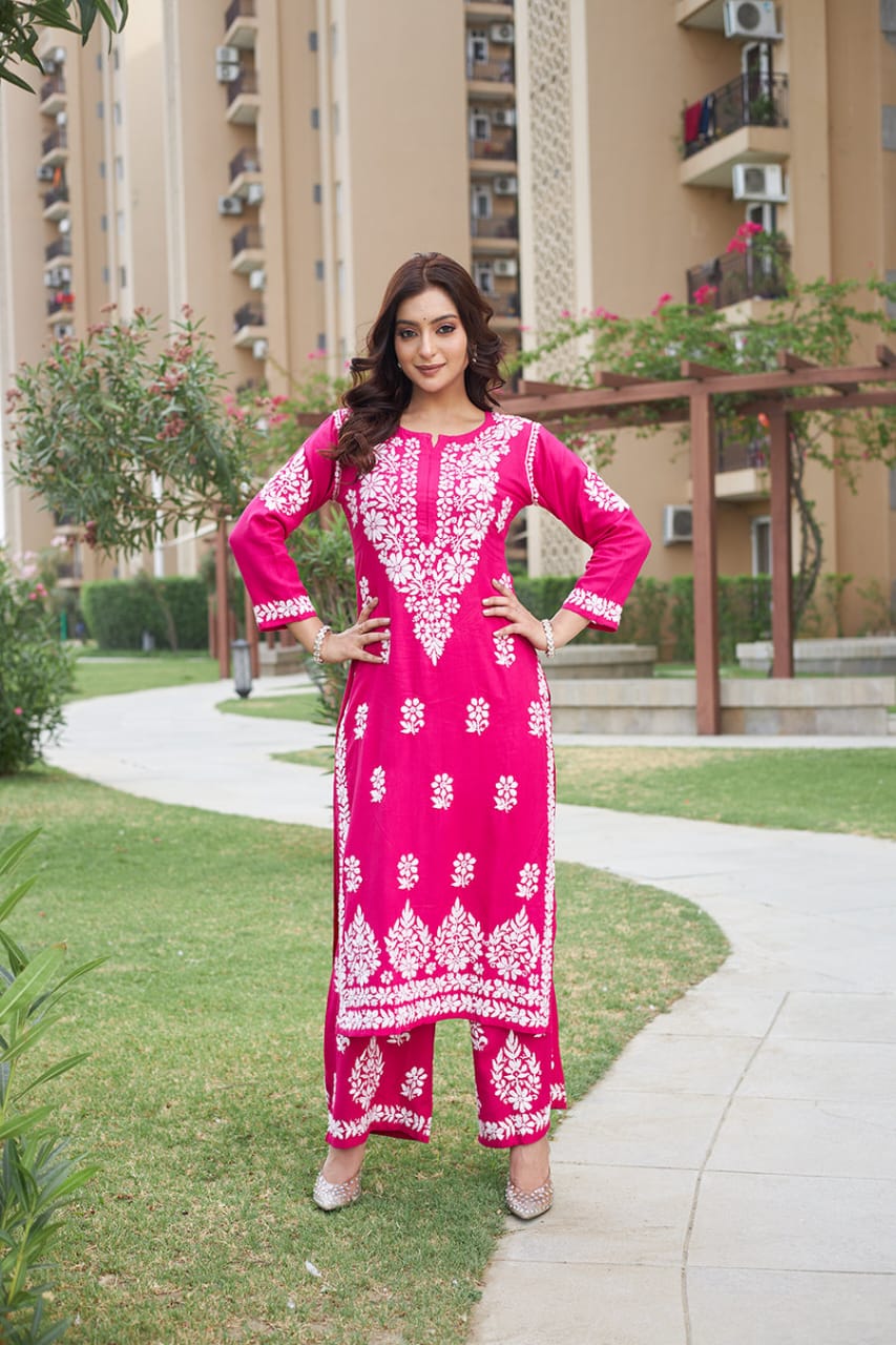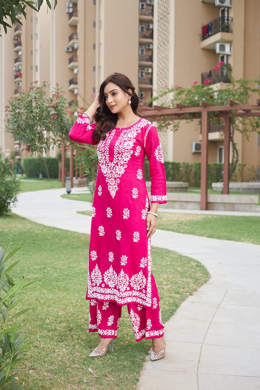 Ishani Pink Chikankari Kurta Set