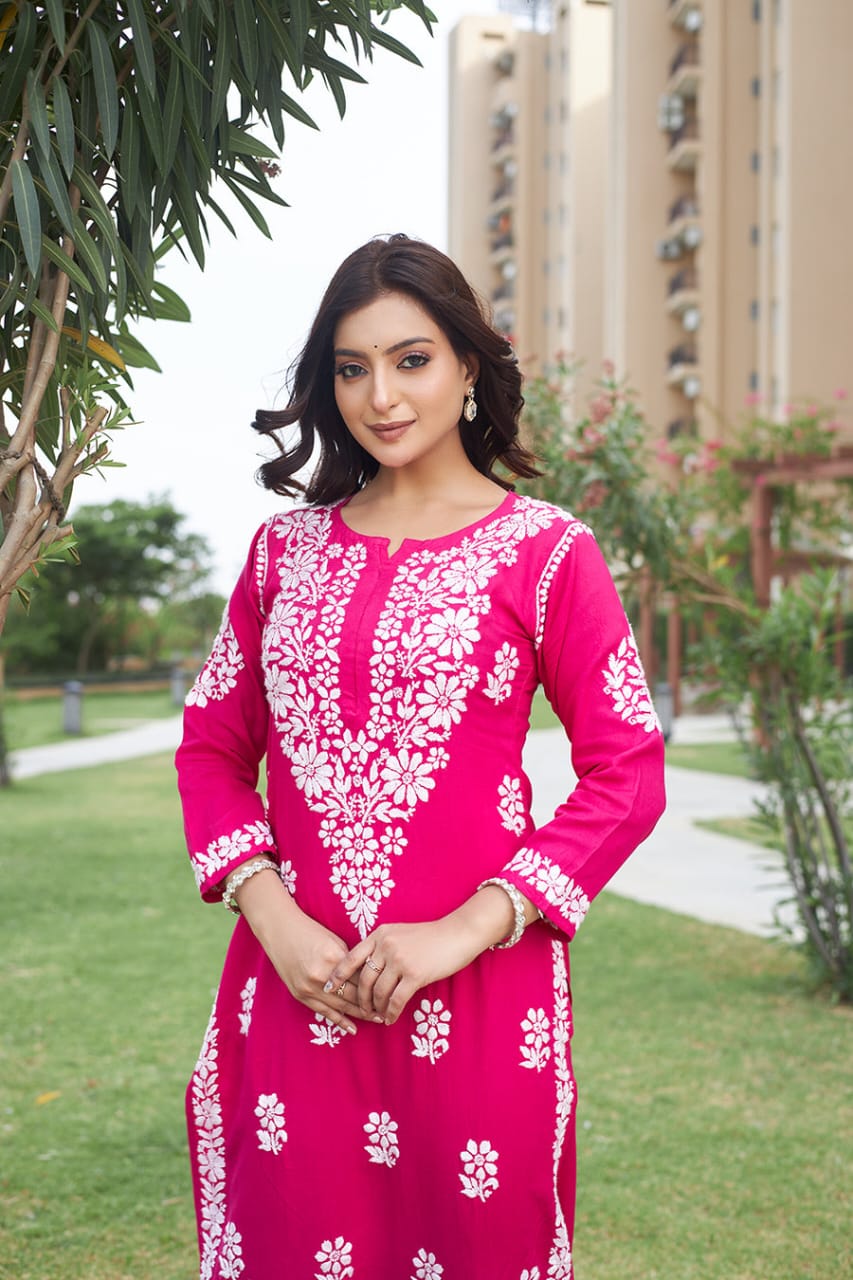 Achieve an unforgettable aesthetic look with our LUCKNOW Chikankari cotton Straight Short Kurta. Crafted with cotton for a luxuriously soft feel, it features gracefully detailed lace for a striking, sophisticated yet casual look.ย