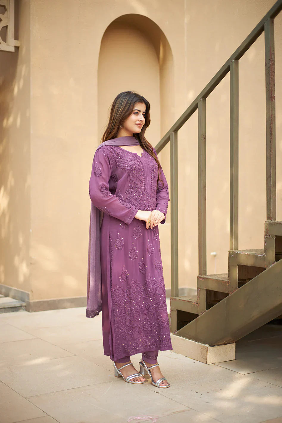 Viscose Georgette Straight Kurta Set With 3D Work and Dupatta exudes refined luxury with its sophisticated georgette fabric with Cotton Pants. This exquisite ensemble is expertly crafted for tasteful elegance, exemplifying the classic aesthetic of timeless fashion.
